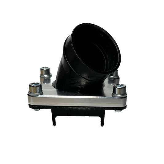 Wir nutzen eine spezielle Nut Verbindung zwischen Aluminiumplatte und Ansaugstutzen, weshalb unsere Stutzen, mit rundem Auslass, zu 360 Grad drehbar sind.